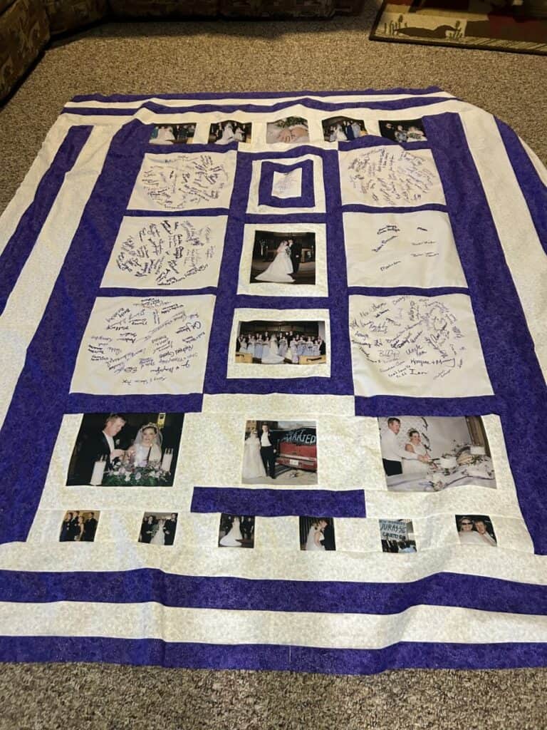 More wedding photo quilt inspiration with signature blocks…priceless!