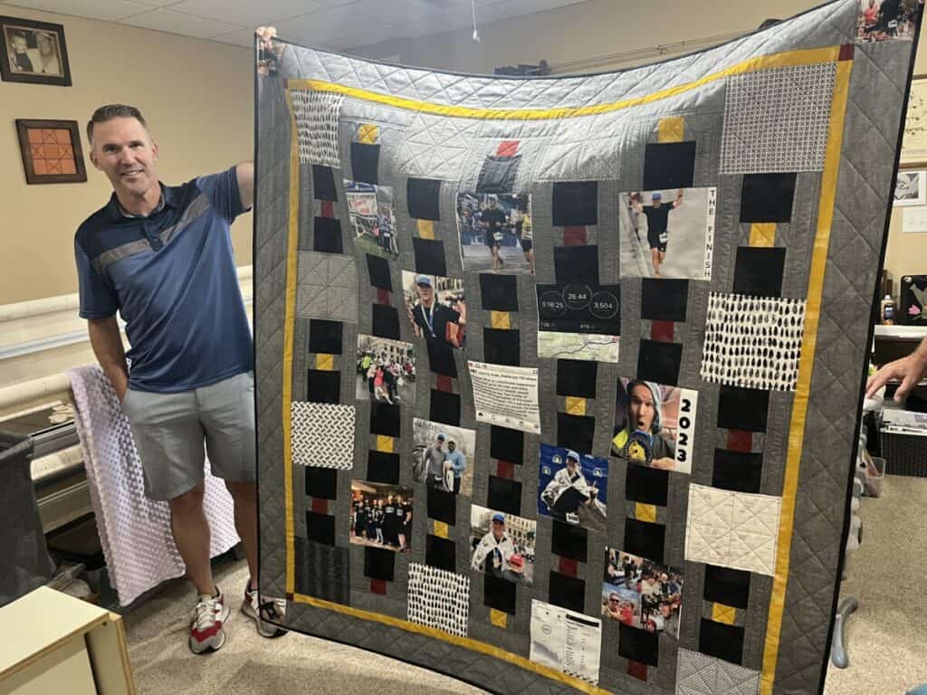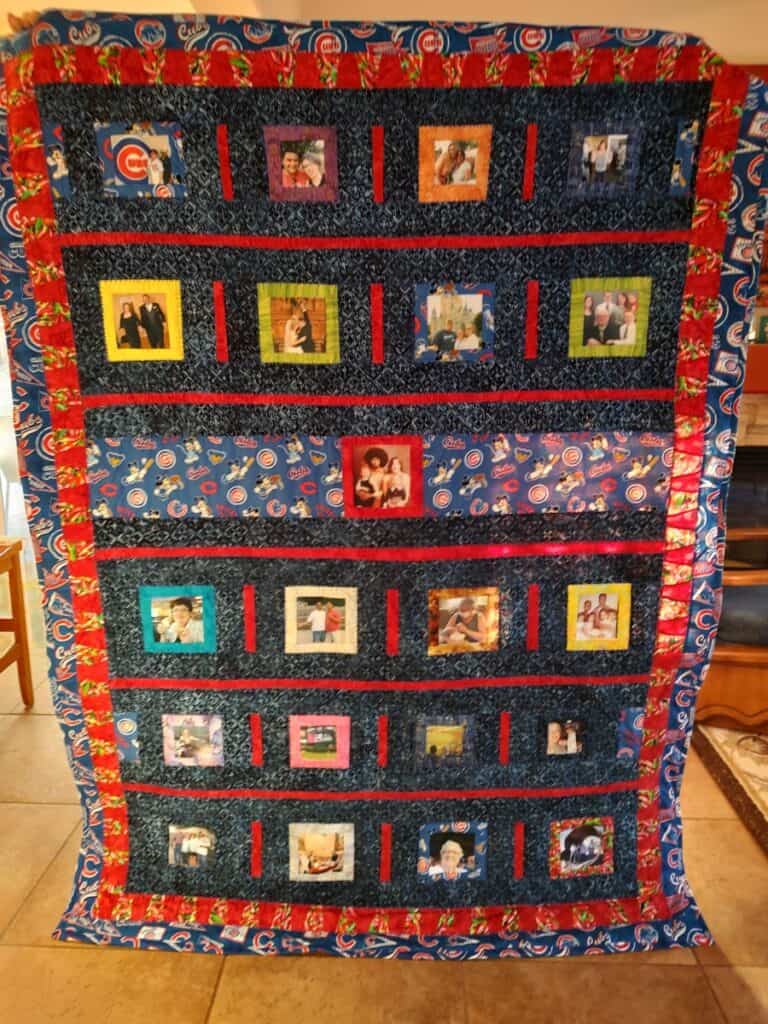 Photo quilt blocks combined with your favorite sports team is always a winner!