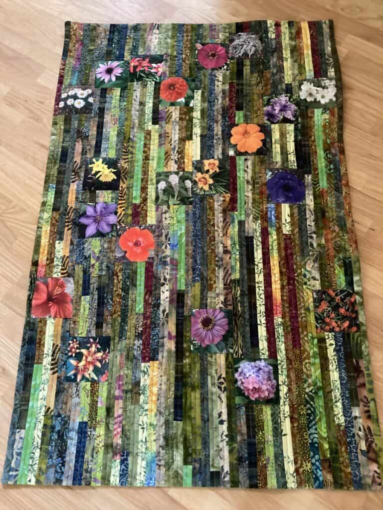 This mini quilt is stunning with all the FLOWER PHOTO QUILT BLOCKS that are within this batik masterpiece!So original!
